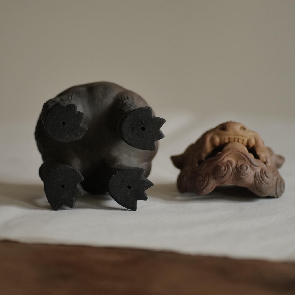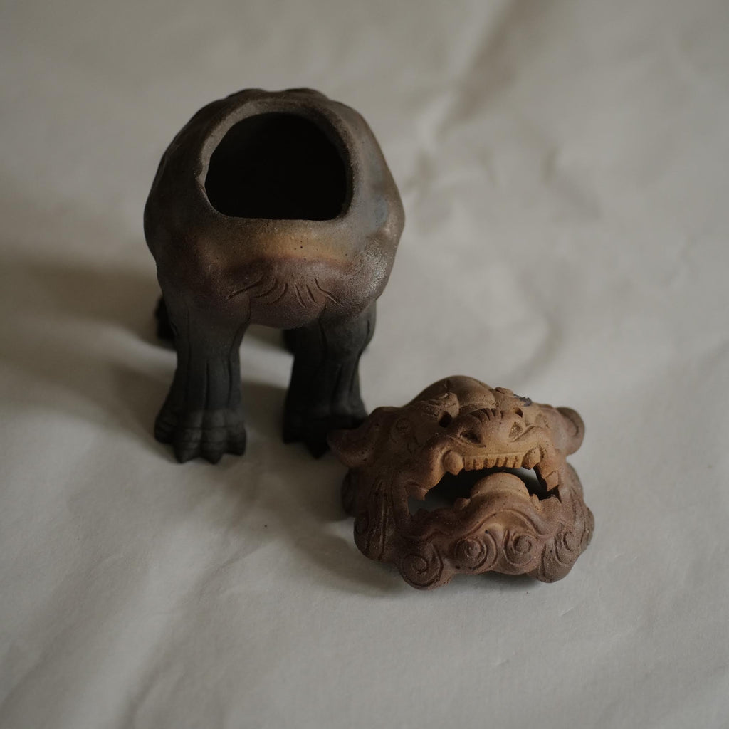 Encensoir Shishi en grès brut, réalisé au sein du Four familiale Nakano Touchi (Karatsu), dans les années 80 (ses encensoirs ne seront plus produits à l’avenir).