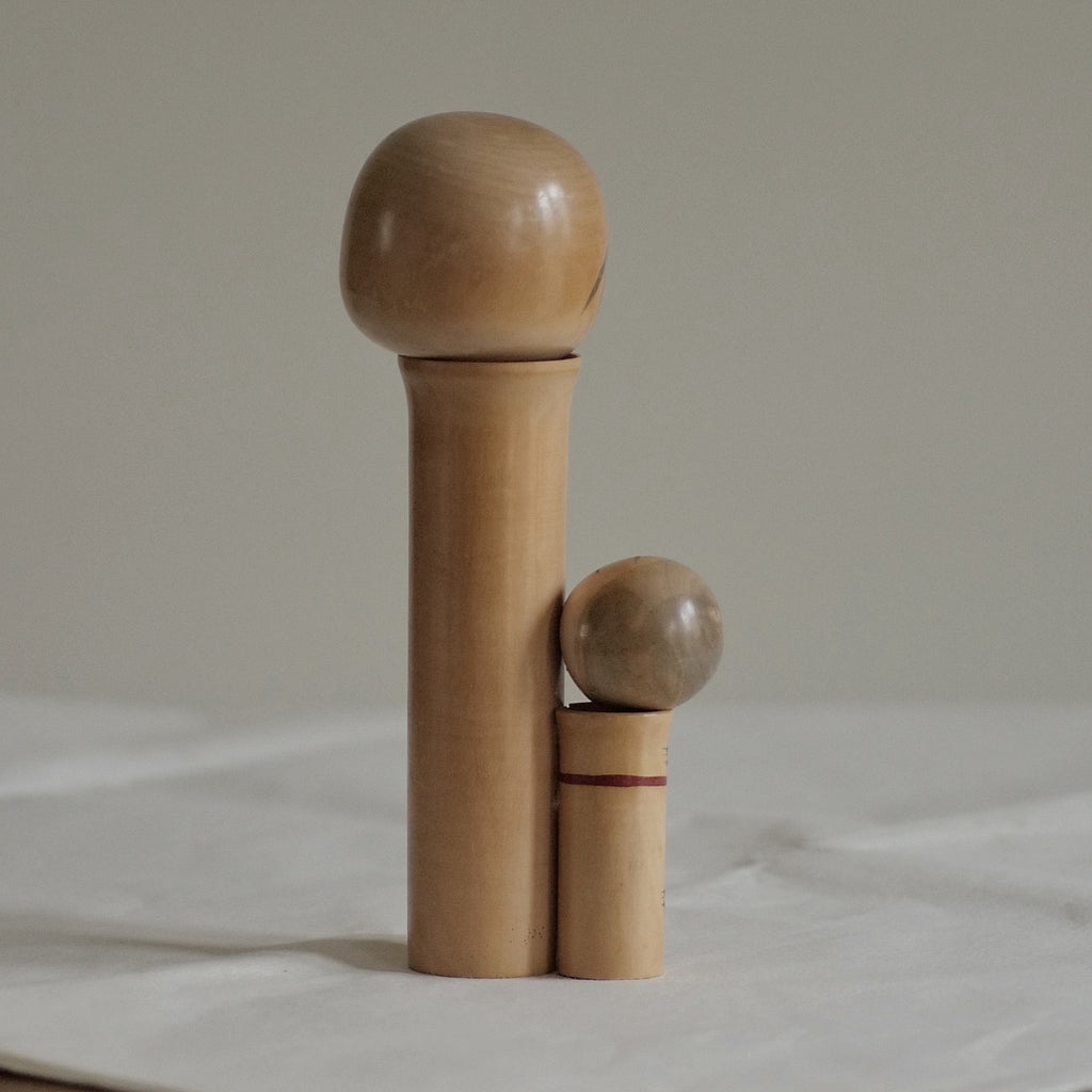 Kokeshi vintage mère et enfant, réalisée par Sato Suigai.
