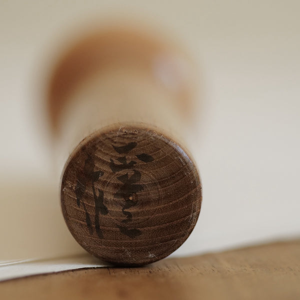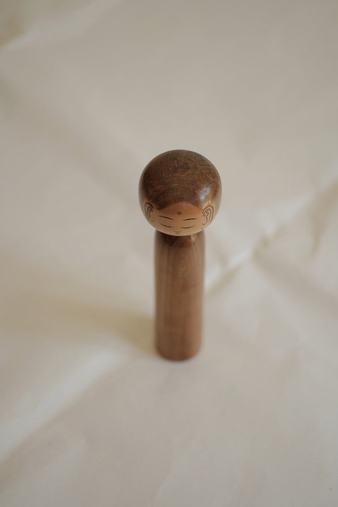 Kokeshi Jizo à l’expression paisible, réalisé par Ichikura Masamichi. L’atelier de Masamichi- san était initialement situé à Shibukawa, la famille a déménagé à Numata (Gunma), un peu après la naissance de leur fils (Tadashi).