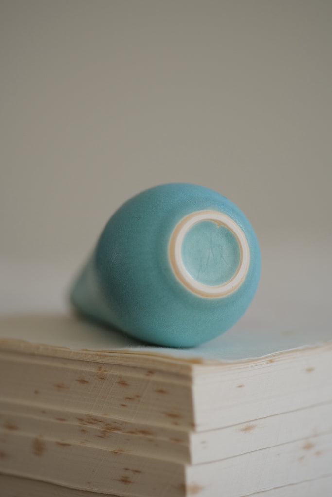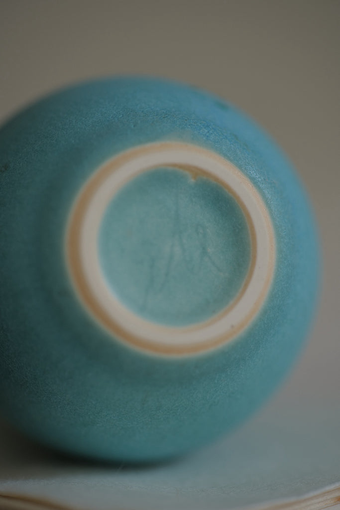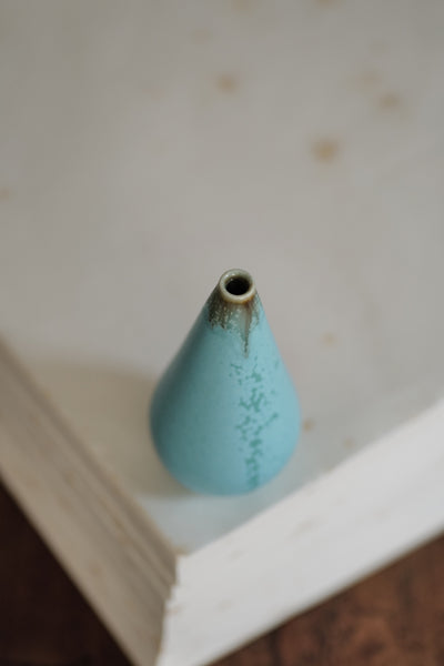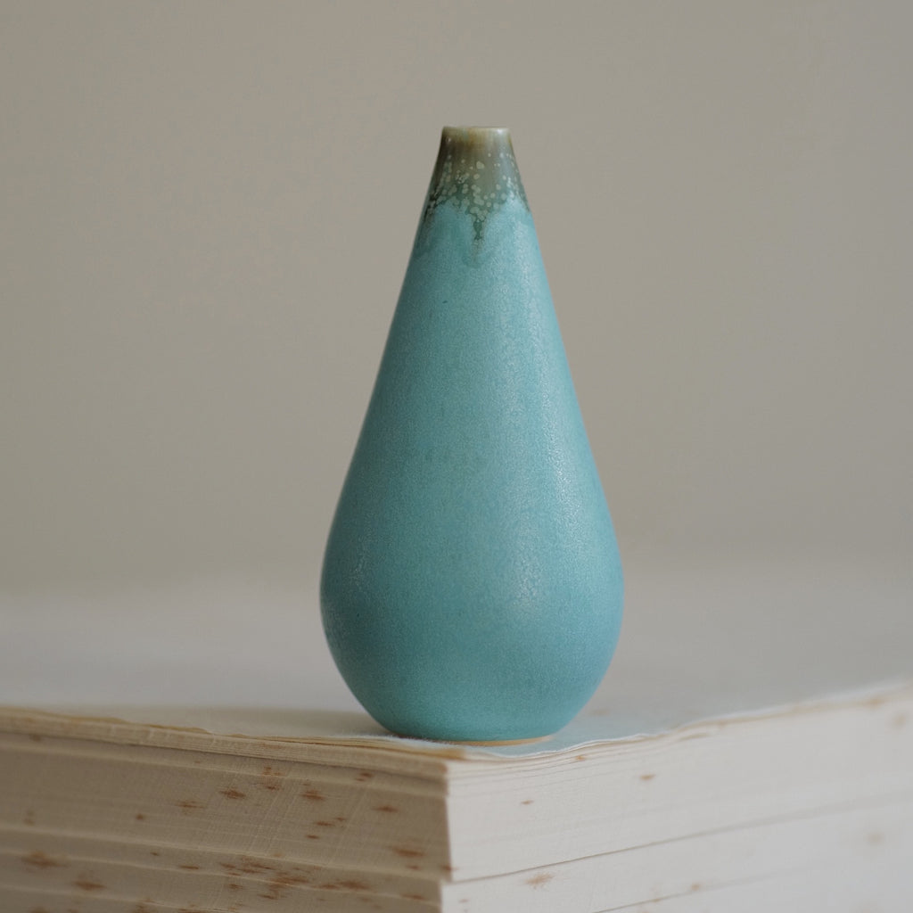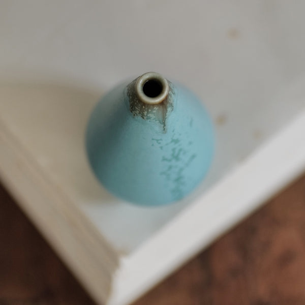 Mini vase turquoise aux belles nuances minérales réalisé par Megumi Miyamoto. Les céramiques de Megumi sont très populaires.
